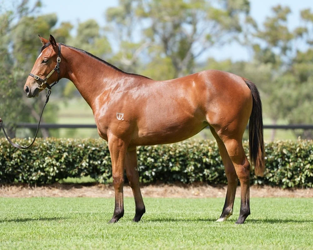 A well-put-together horse, bred on the same farm as Cox Plate winners, Caulfield Cup champions, AJC Derby, QTC Derby, QTC Oaks winners, and many other top performers. By Pierro and out of an I Am Invincible mare, this horse is bred for speed, class, and big-race potential.